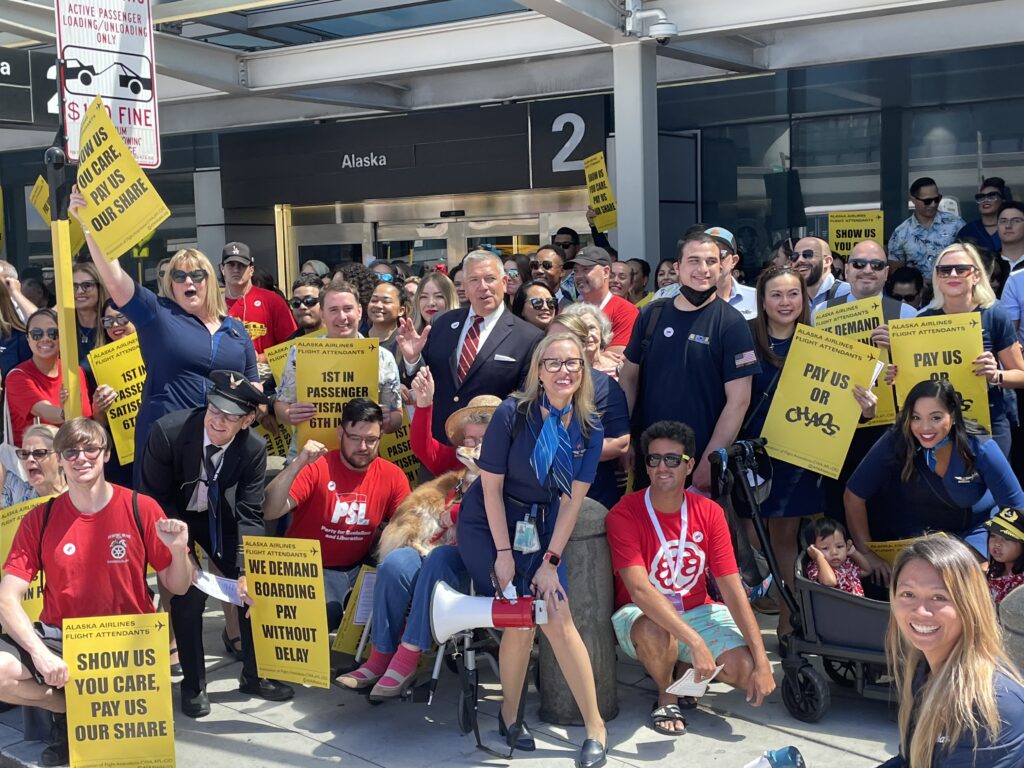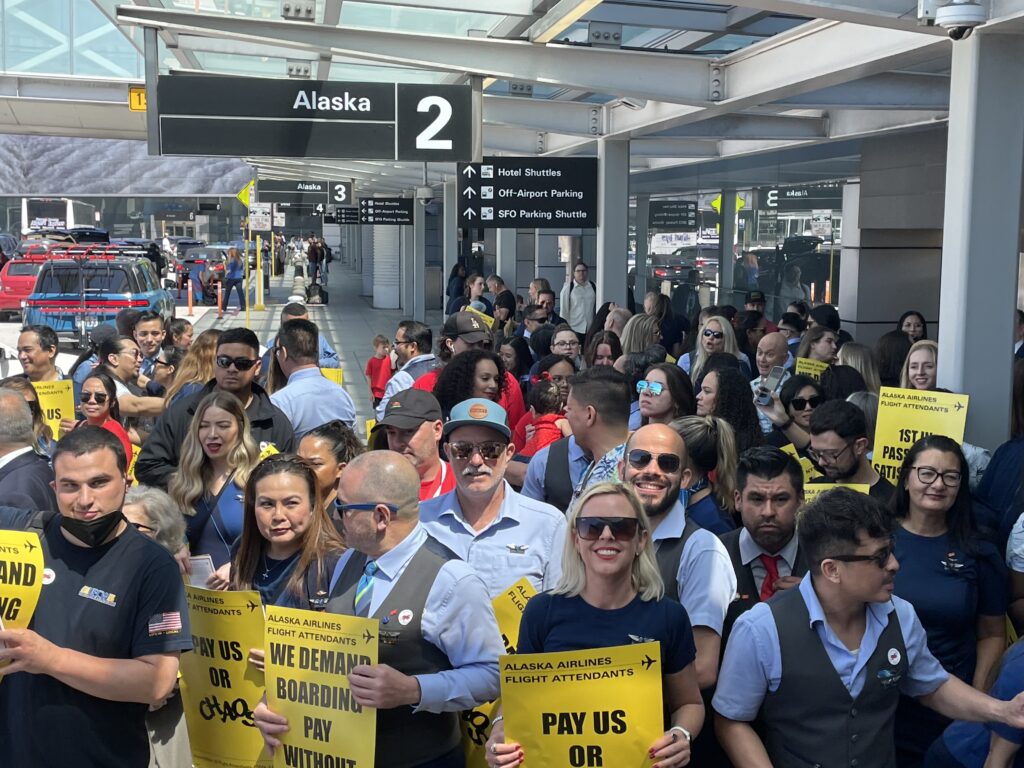 MyNorthwest: Alaska Airlines flight attendants picket for fair wages in SeaTac
